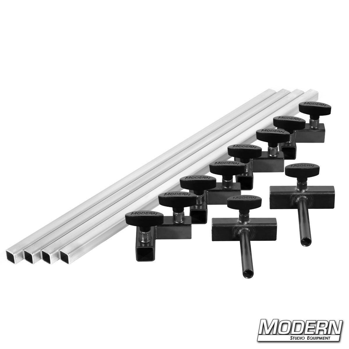 We manufacture all of our corners with stoppers welded into the interior, which allows you to quickly and easily create a perfectly square frame every time. Please note that we cut the square aluminum to 46" lengths in order to accommodate for these stoppers, to insure you a true 6' x 6' frame after assembly.