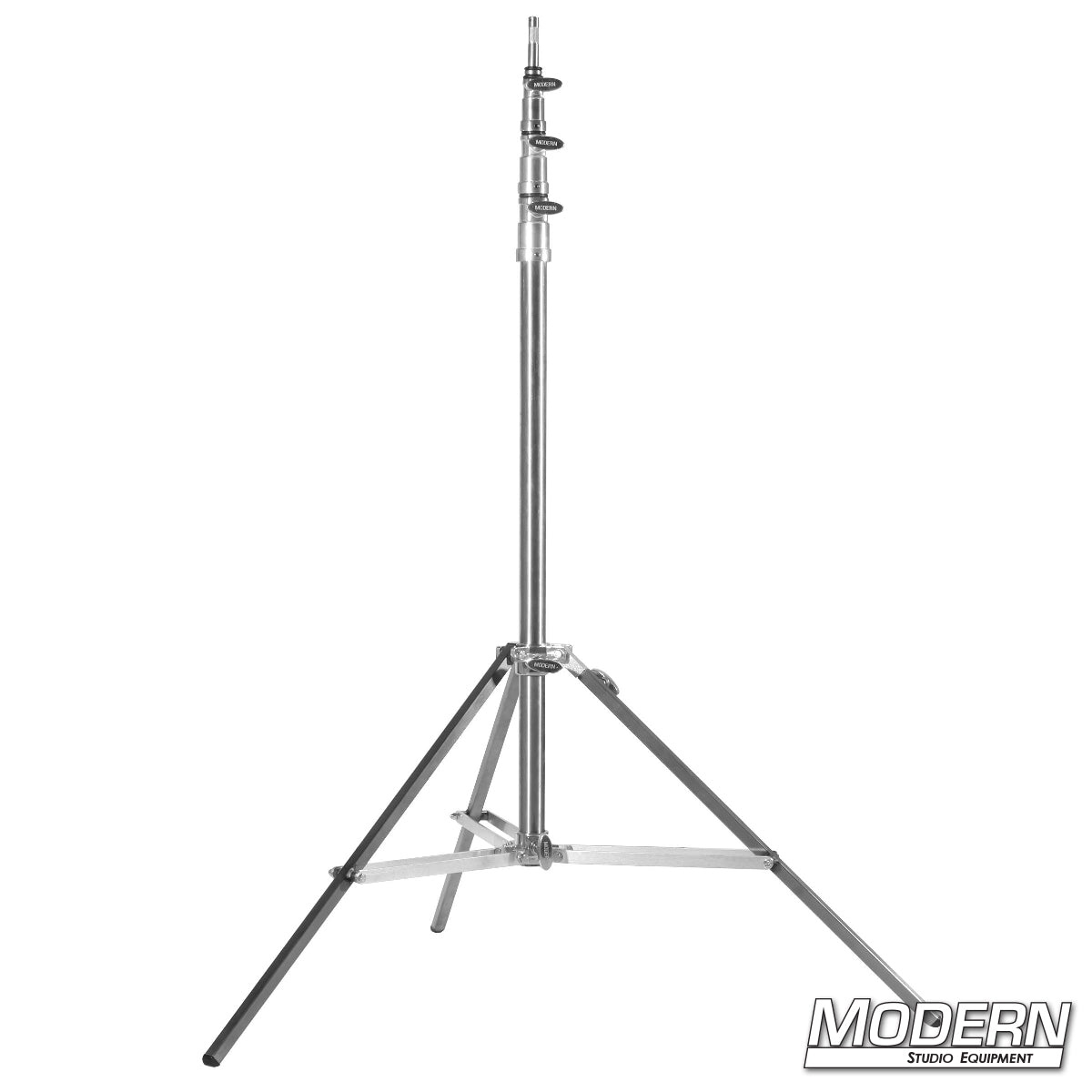 As only Modern does, we manufacture our Baby Triple Riser Stand with 304 military grade stainless steel legs and tubes. Also know as a Beefy Baby Stand, we equip these stands with an adjustable rocky mountain leg which enables it to be leveled on uneven surfaces. These stands have three risers that terminate into a 5/8" Baby Pin.