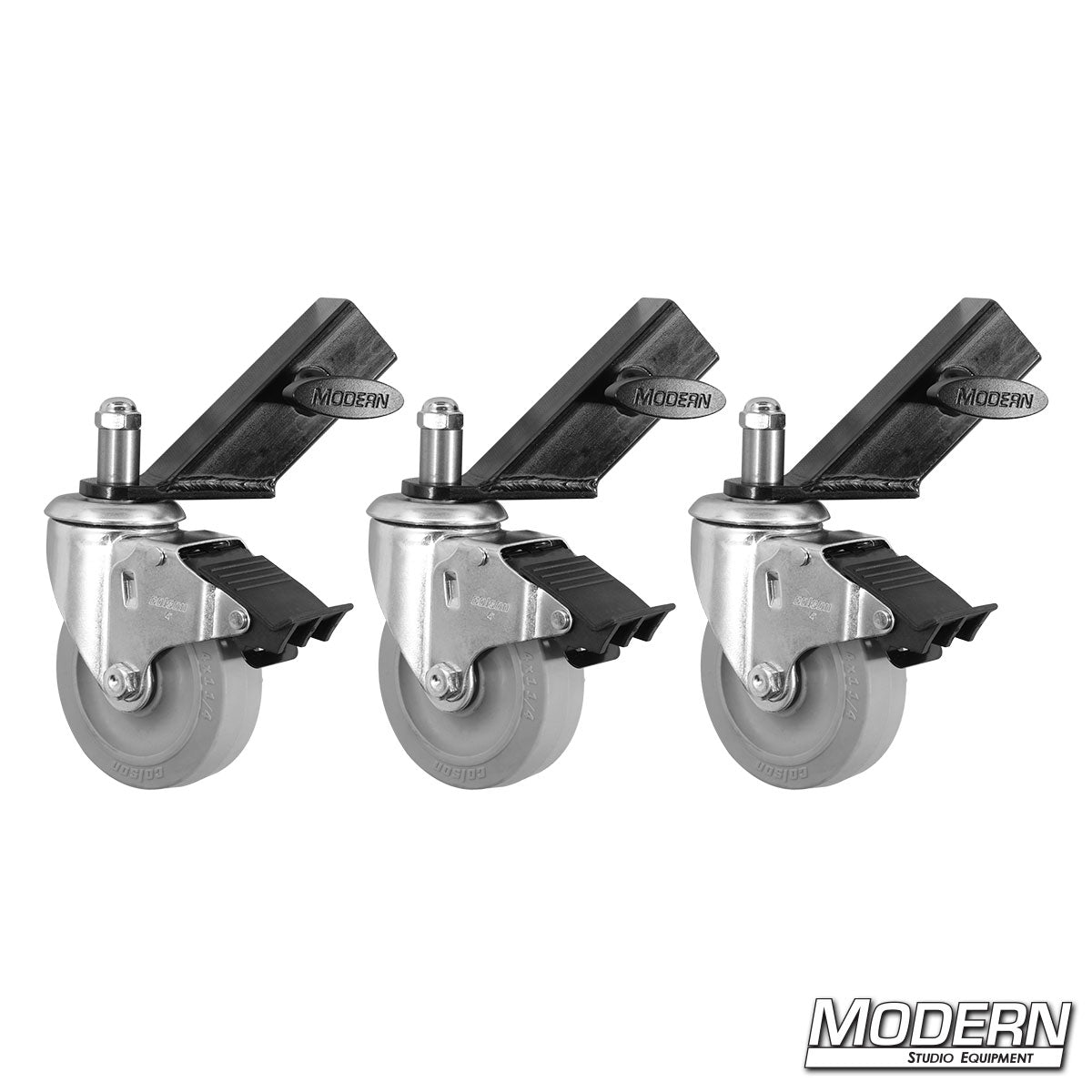 Set of 3 wheels & slip on adapters for all mambo combo stands that have 1-1/4" x 1-1/4" legs.